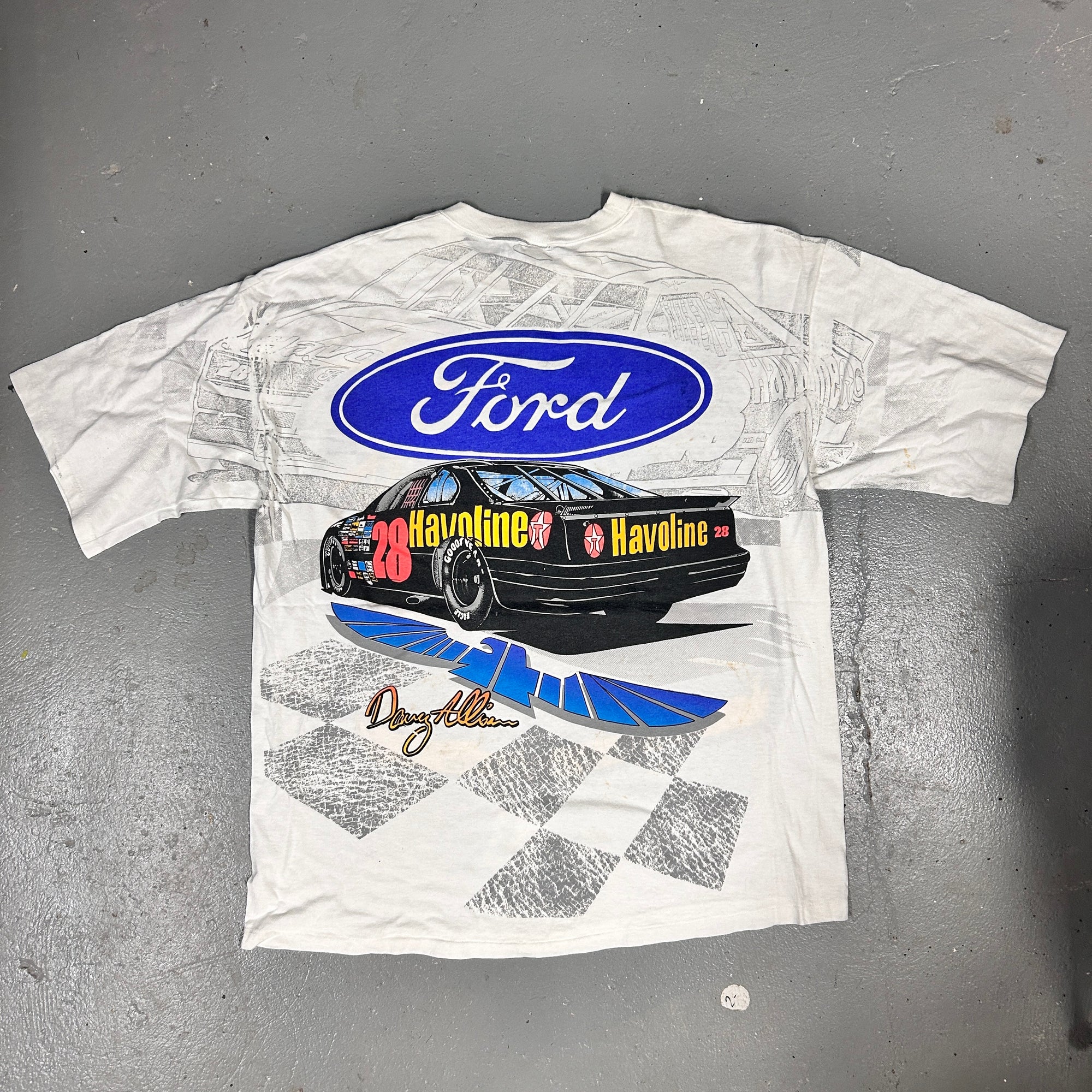 Vintage 90s Davey Allison Havoline Racing Graphic T-Shirt Single Stitch