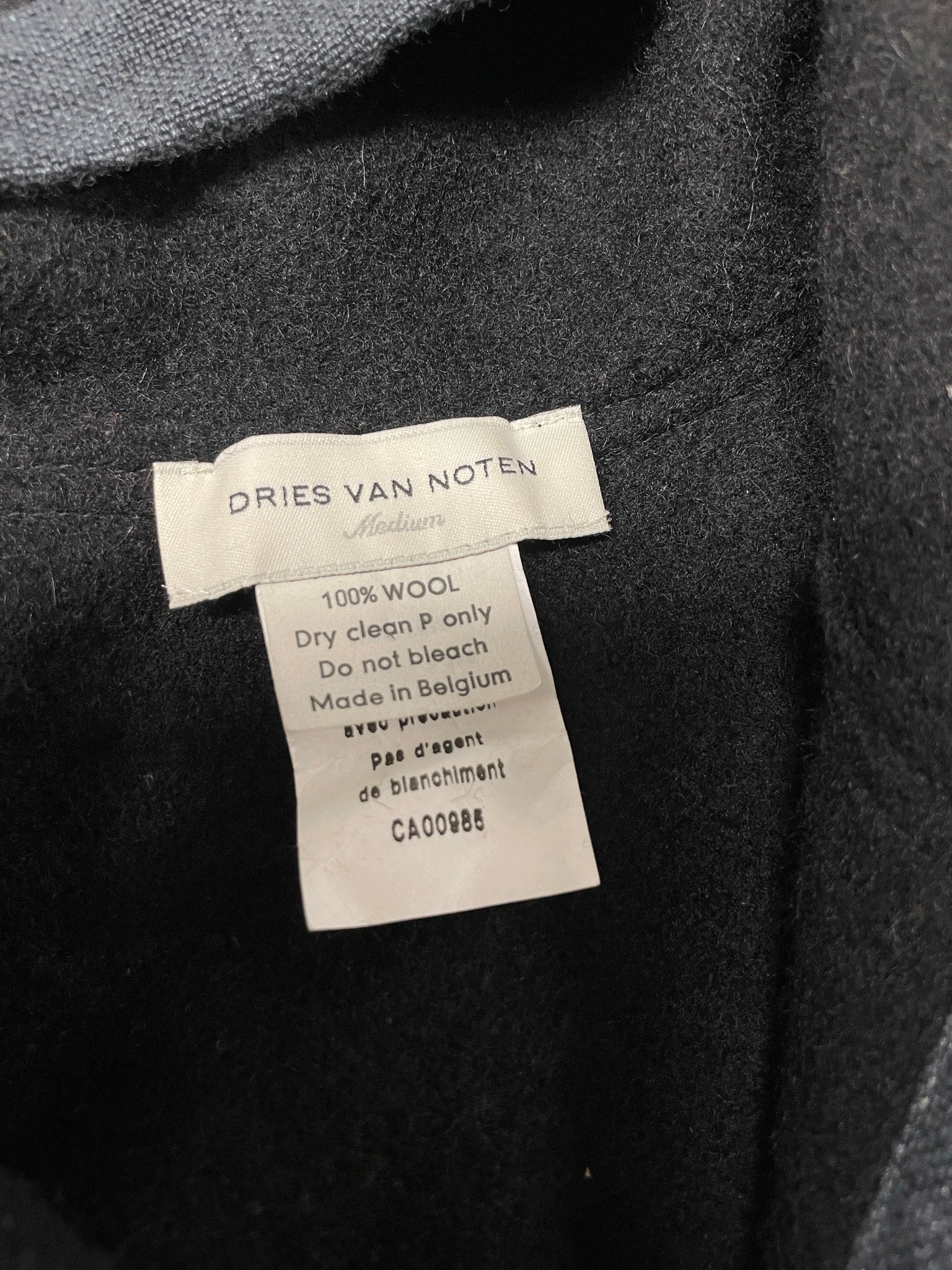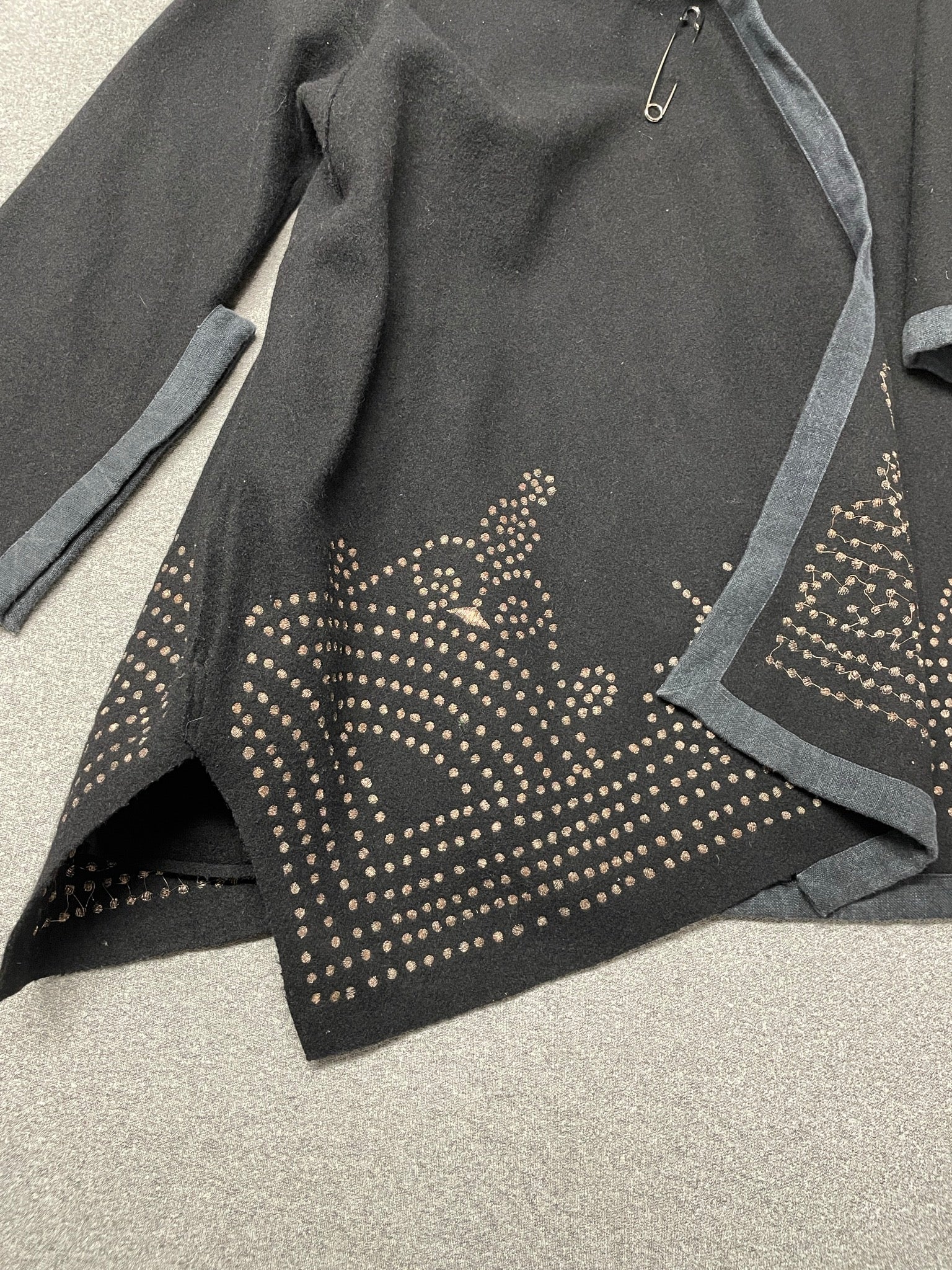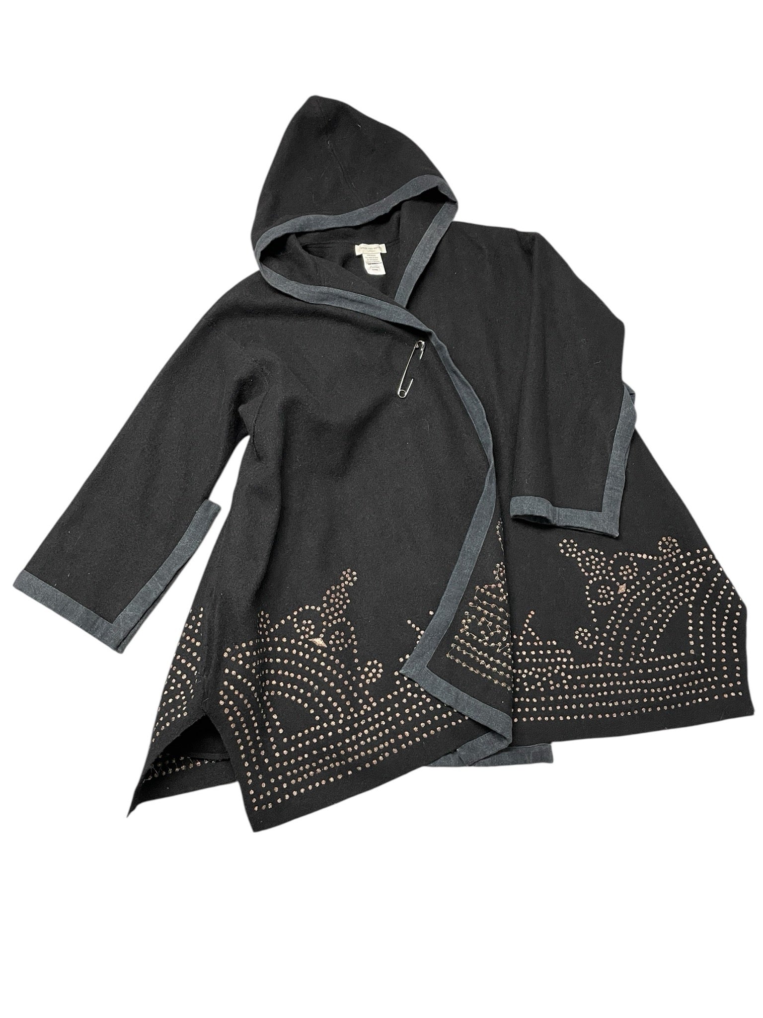Vintage 2000s Dries Van Noten Hooded Wool Coat with Embroidered Details