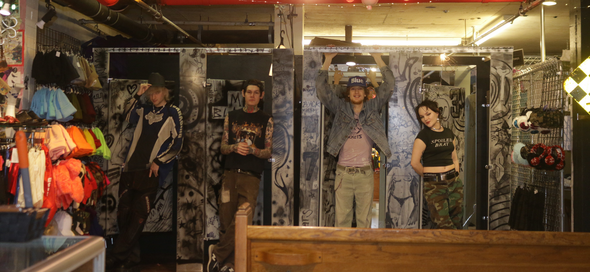Loud music shakes the racks of streetwear, punk and amazing thrift deals so well-priced, you can afford to shop. There's more than 100 NSFW graphic T-shirt designs and rows of distressed vintage. Check out the accessories area for new body jewelry, earrings, rings, and tons other new and vintage items arriving daily.